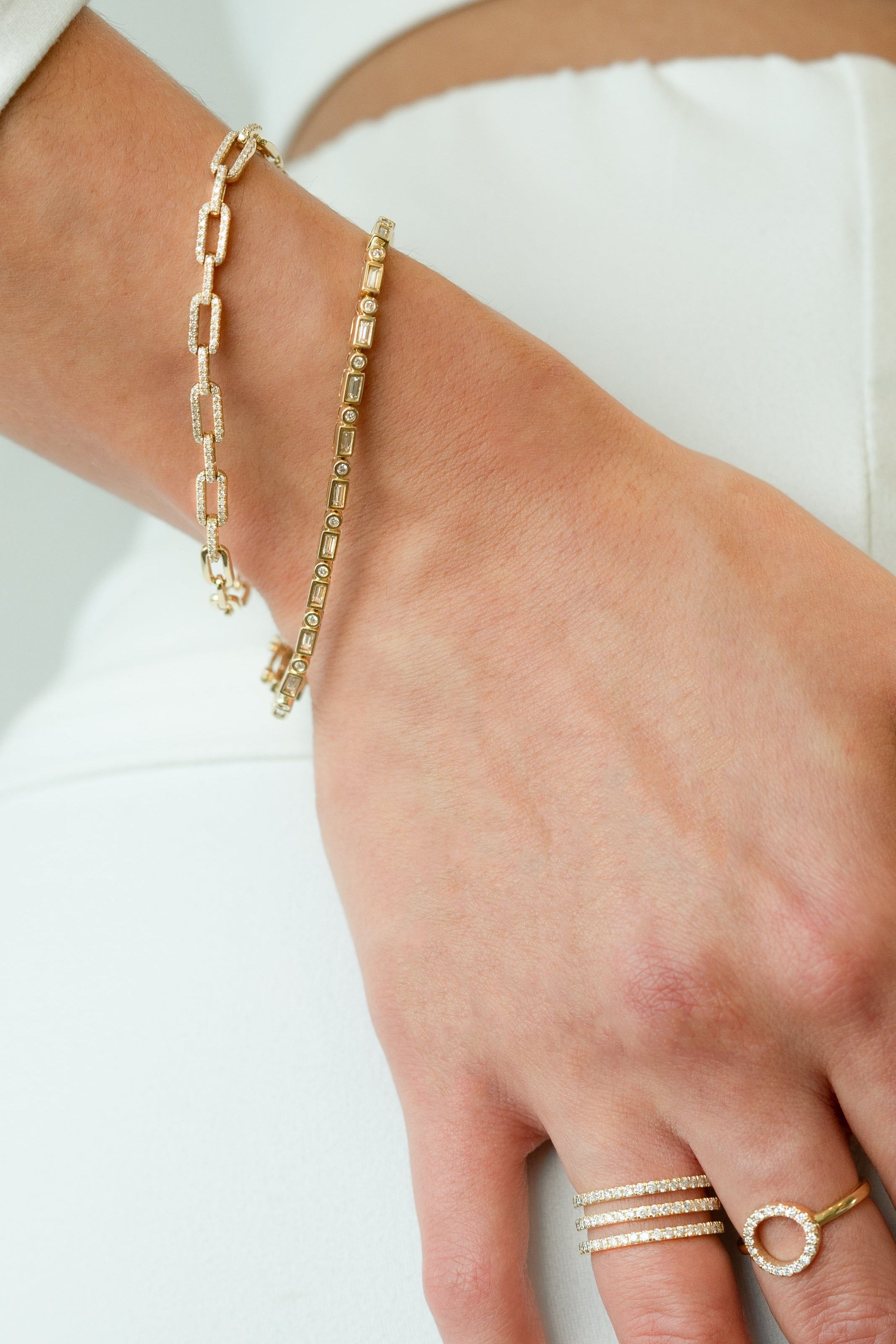 Gorgeous baguette and round diamond tennis bracelet. This jewellery piece will be the elegant addition to your jewellery collection. Perfect on its own or in a chic stack, this sparkly bracelet will complete any outfit.