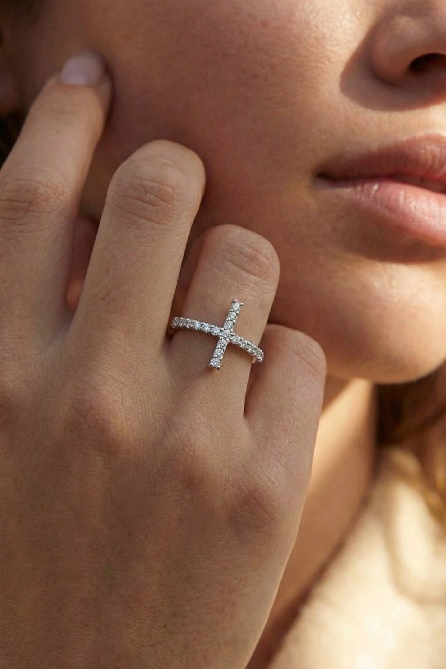 Timeless cross ring crafted from white gold and paved with sparkling round diamonds. A beautiful ring on its own or in a stylish stack.