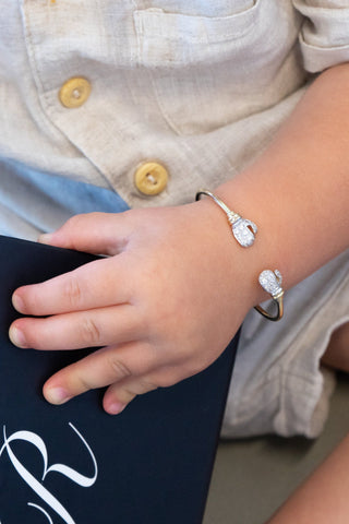 Our bestseller glove pendant in yellow gold and CZ studs.