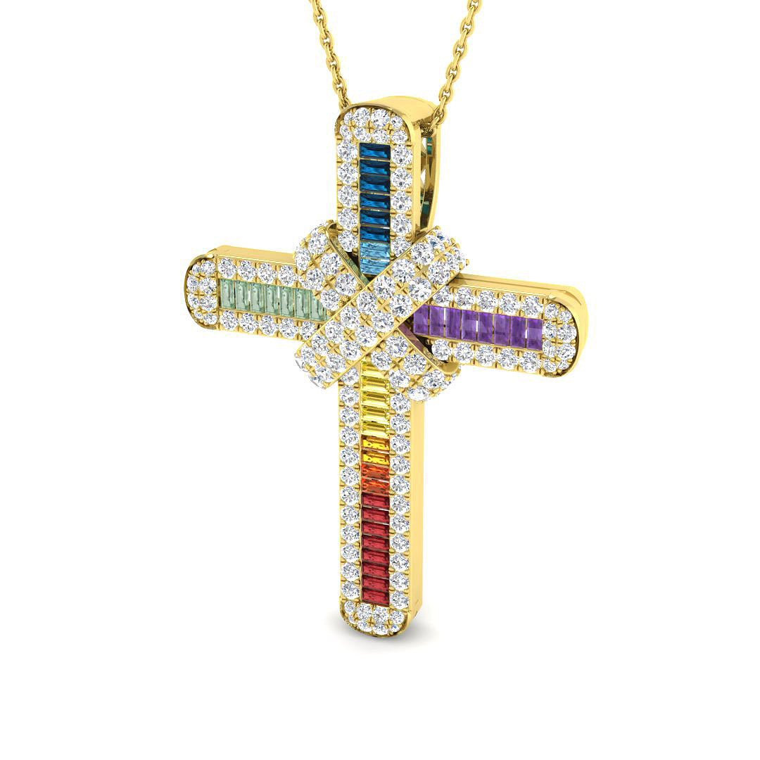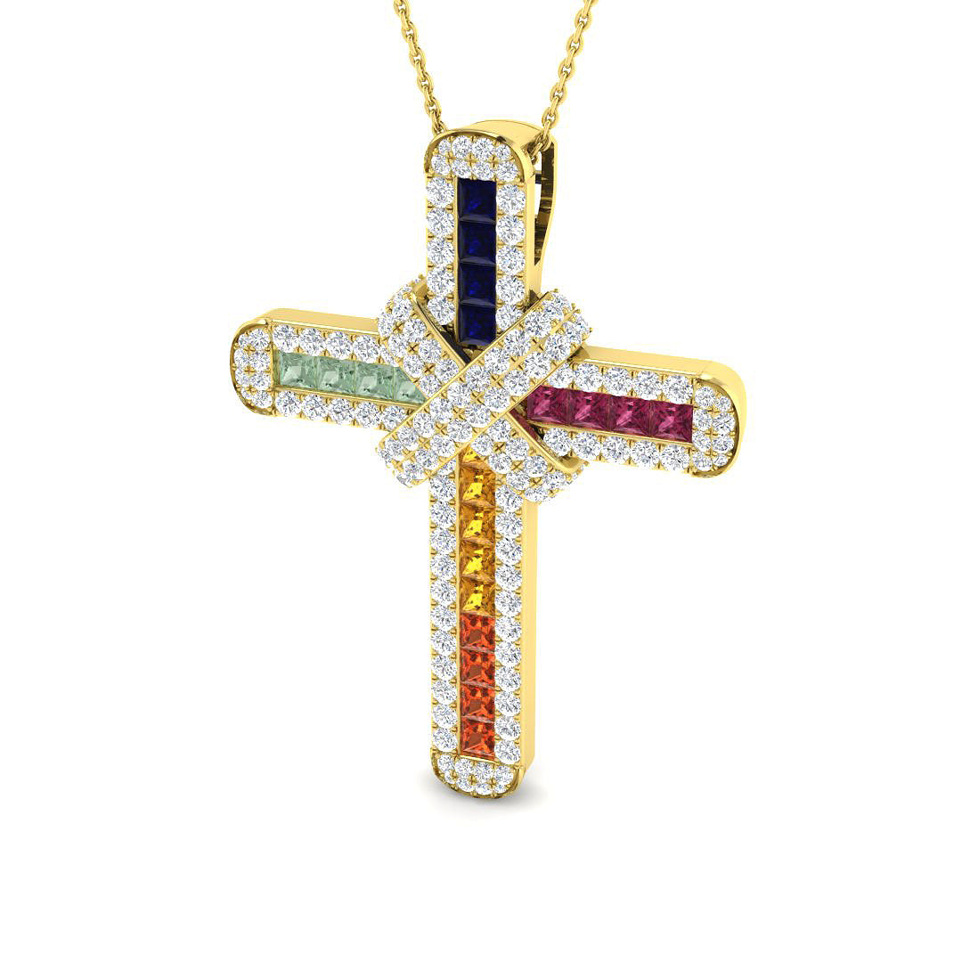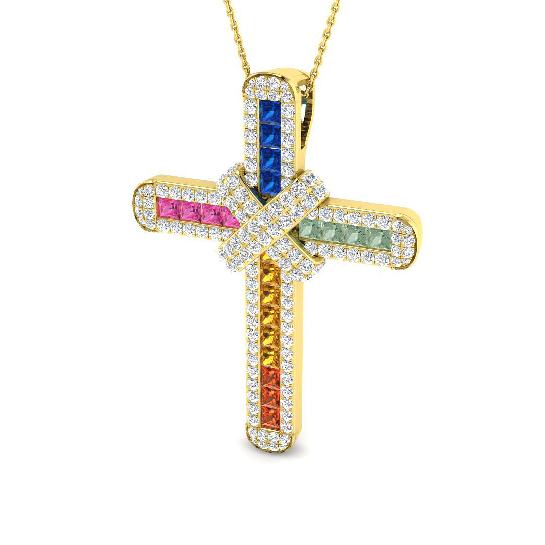 Princess Multi Sapphires & Diamonds Cross in 9k Yellow Gold / 9k Rose Gold.