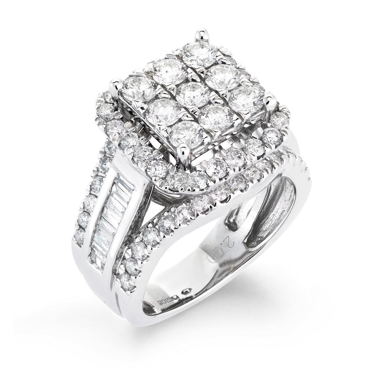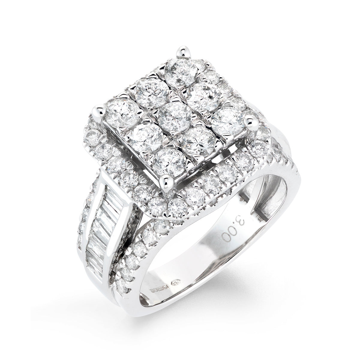 Our iconic Princess Halo Ring. Available in 9KT white gold with 3 different available carat weight of 1CT, 2CT, or 3CT.
