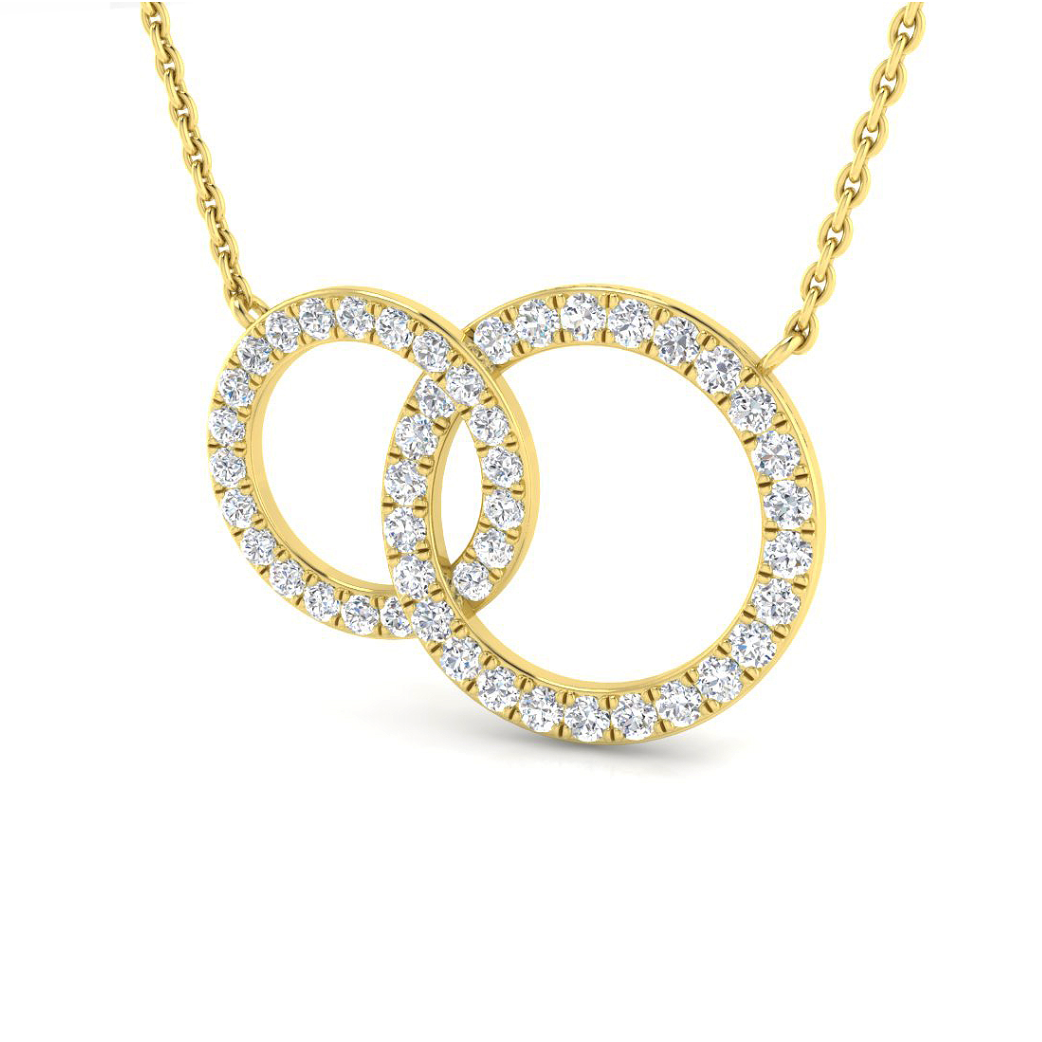 A timeless symbol of love and connection, the You & I Diamond Necklace features two interlacing gold and diamond circles - with 0.5ct of shimmering diamonds. Crafted in 9kt gold, this elegant pendant is perfect to express your love to someone special..