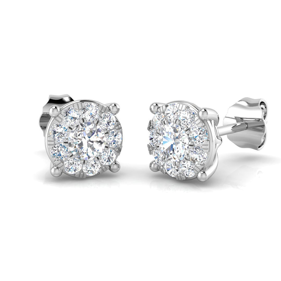 Timeless and sophisticated, this pair of princess diamond earrings is crafted around the round diamonds at their centre.